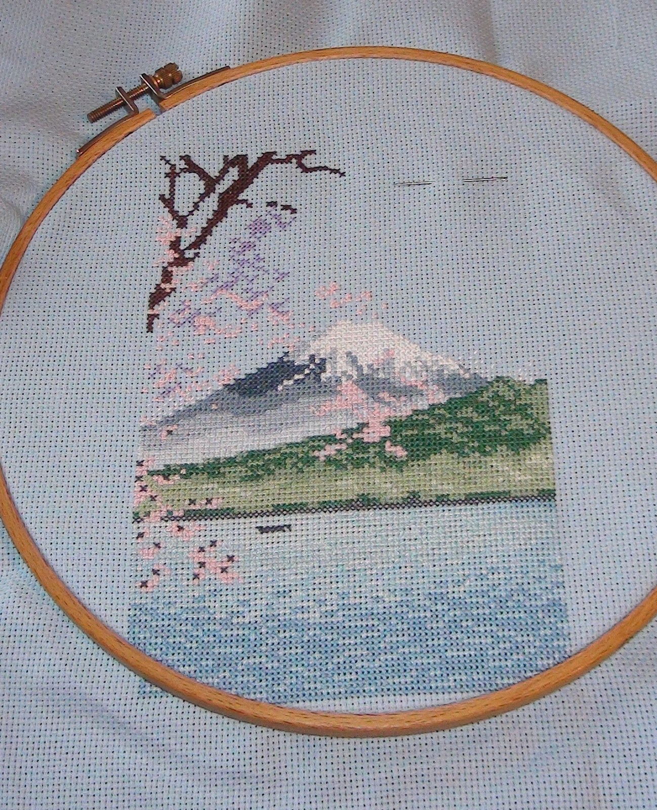 Первое НО - Фудзи, я наконец то ее закончила :))) Сегодня муж отнес к Айвару и через пару недель я похвалюсь своей красавицей. Омрачилась только в самом конце вышивания - не хватило ниток на французские узелки, пришлось доделывать DMCом.