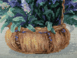 К этому дизайну отношение получилось двойственное. С одной стороны он мрачноват, цветы пестрые, блендов - 11, полукресты и много, в сравнении с двумя другими дизайнам, бэка... С другой стороны - очаровательная соломенная корзинка, сразу добавляющая света, фрузелки и общее впечатление от готовой картины. В этот раз вышивала 12 дней. Теперь подружки подбивают меня вышить последнюю за 10 дней) не знаю, мне кажется что я и так в полную силу трудилась...