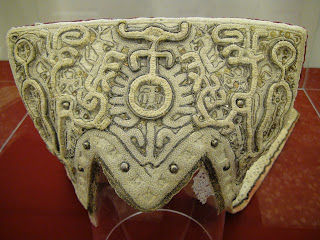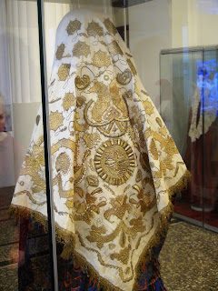 Я конечно похожий видела на выставке в ГИМе, но здесь такое интересное сочетание золотного шитья и бисера, что не могу удержаться и не показать вам подробности))