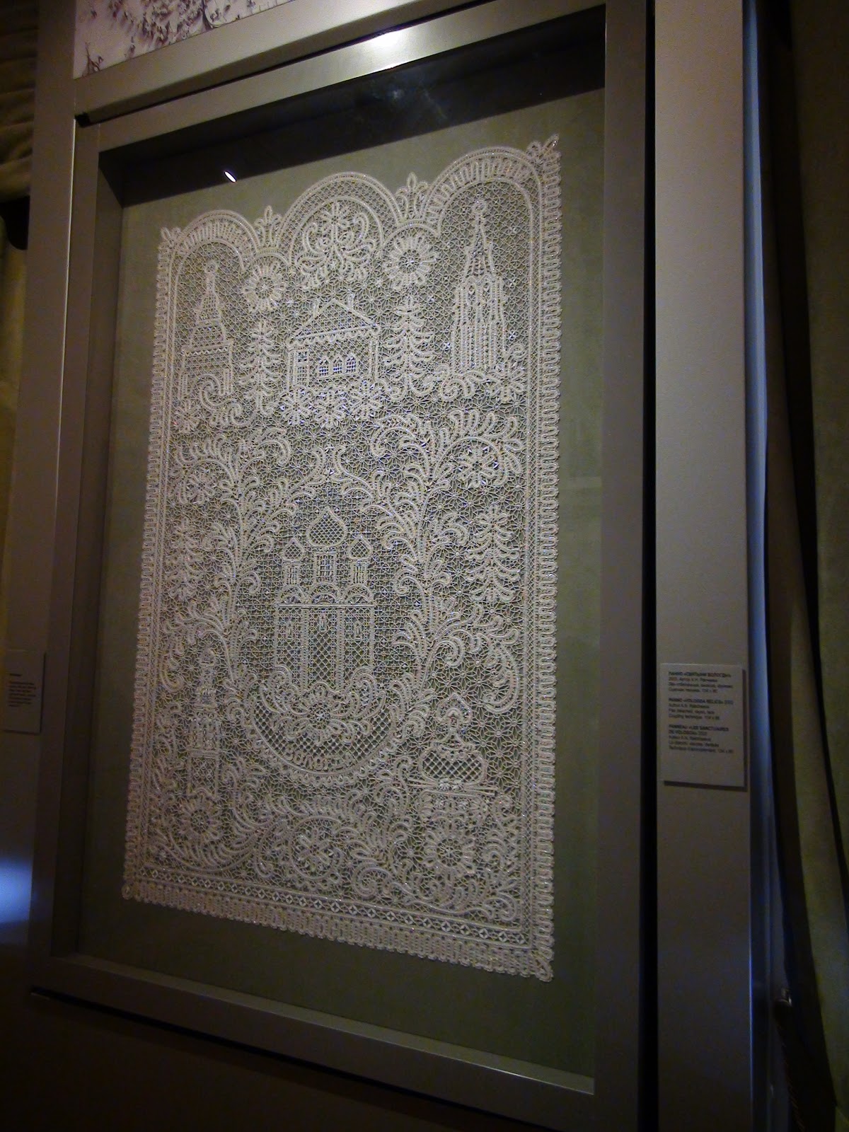 В музее кружева тоже есть небольшой зал с вышивкой) Но в основном конечно потрясающей красоты кружевные панно!